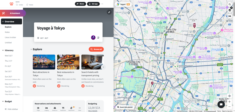 - Vacances détaillées et contrôle total : Wanderlog offre flexibilité, itinéraire personnalisé et suivi des dépenses.
